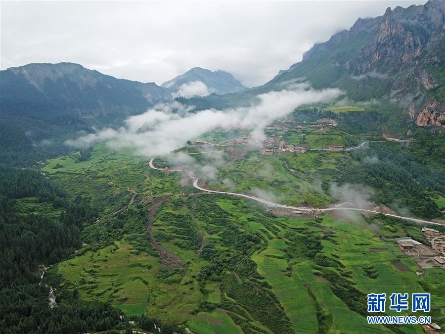 6月26日无人机拍摄的扎尕那景区。扎尕那景区位于甘肃省甘南藏族自治州迭部县益哇乡,扎尕那是藏语,意为“石匣子”,整个景区平均海拔在3000米以上,群山环抱,松柏成林,藏式村落掩映其中,构成独特的人文和自然景观。晨雾中的扎尕那景区宛如仙境,美不胜收。新华社记者 马宁 摄