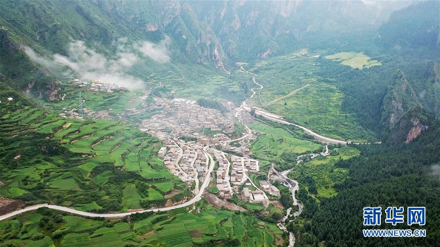 6月26日无人机拍摄的扎尕那景区。扎尕那景区位于甘肃省甘南藏族自治州迭部县益哇乡,扎尕那是藏语,意为“石匣子”,整个景区平均海拔在3000米以上,群山环抱,松柏成林,藏式村落掩映其中,构成独特的人文和自然景观。晨雾中的扎尕那景区宛如仙境,美不胜收。新华社记者 陈斌 摄