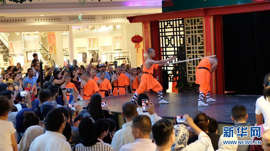 6月27日,在摩洛哥卡萨布兰卡的摩洛哥购物中心,民众观看少林功夫演出。 位于摩洛哥最大城市卡萨布兰卡的摩洛哥购物中心27日举办中国主题购物节开幕式,吸引了数千民众参加。 新华社记者 陈斌杰 摄
