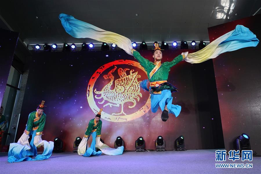 7月4日,演员在“湖北日”活动上表演舞蹈《楚韵》。 当日,2019年中国北京世界园艺博览会“湖北日”活动在北京世园会园区举行。 新华社记者 鞠焕宗 摄