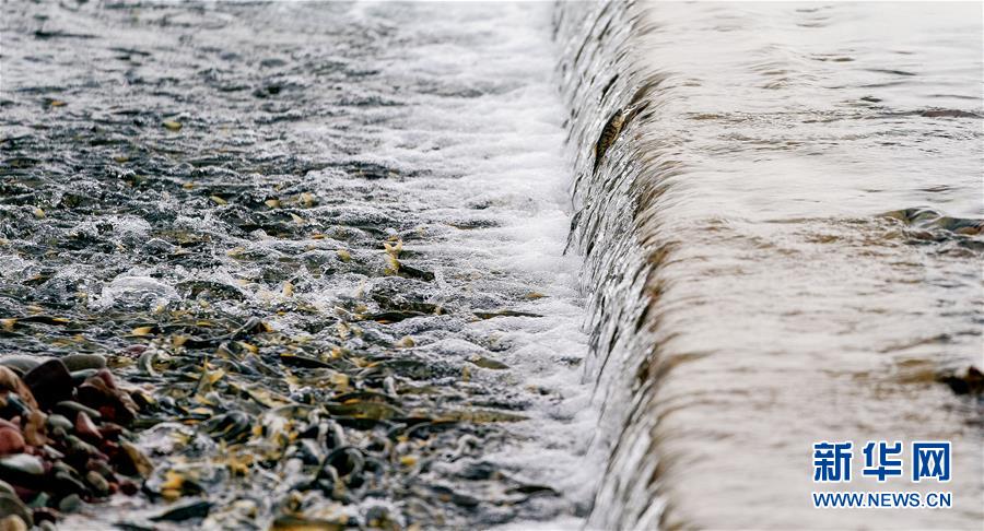 7月6日,青海省刚察县沙柳河里的湟鱼跃起向上洄游。 盛夏时节,在我国最大的内陆咸水湖青海湖中,湟鱼开始成群结队沿着入湖河流逆流而上,到上游淡水河产卵,形成“半河清水半河鱼”的奇观。 新华社记者 吴刚摄
