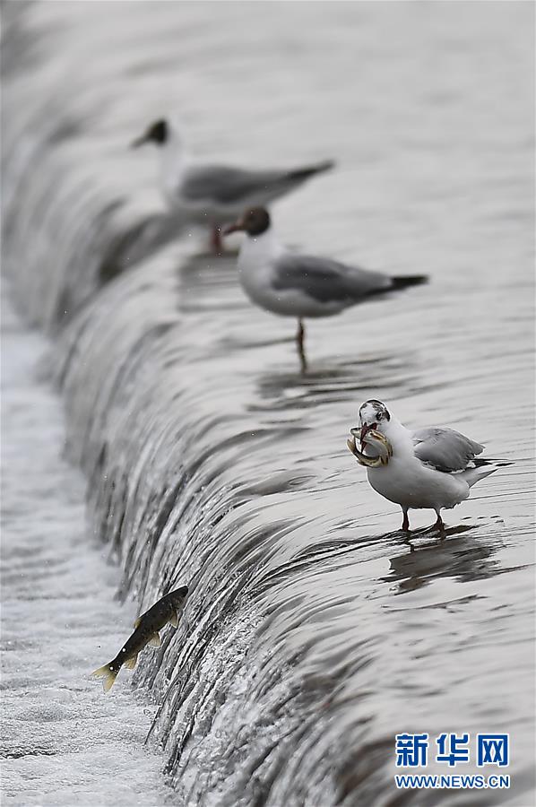 7月6日,在青海省刚察县沙柳河,棕头鸥在觅食。 盛夏时节,在我国最大的内陆咸水湖青海湖中,湟鱼开始成群结队沿着入湖河流逆流而上,到上游淡水河产卵,形成“半河清水半河鱼”的奇观。 新华社记者 张宏祥摄