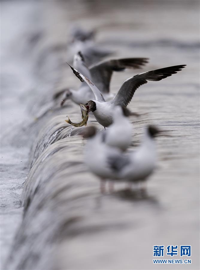 7月6日,在青海省刚察县沙柳河里,几只棕头鸥在捕捉跃起的湟鱼。 盛夏时节,在我国最大的内陆咸水湖青海湖中,湟鱼开始成群结队沿着入湖河流逆流而上,到上游淡水河产卵,形成“半河清水半河鱼”的奇观。 新华社记者 费茂华摄