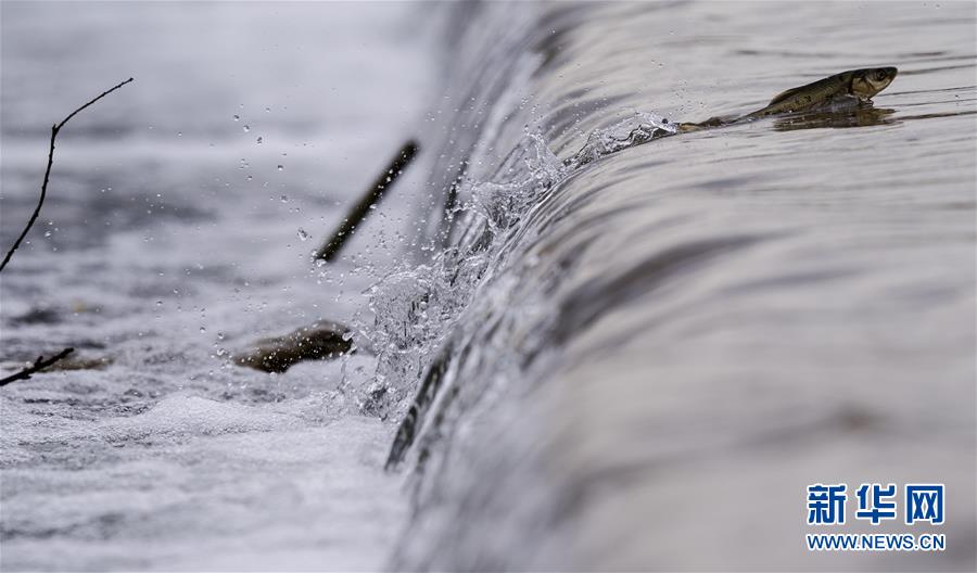 7月6日,在青海省刚察县沙柳河里,一只湟鱼跃起向上洄游。 盛夏时节,在我国最大的内陆咸水湖青海湖中,湟鱼开始成群结队沿着入湖河流逆流而上,到上游淡水河产卵,形成“半河清水半河鱼”的奇观。 新华社记者 费茂华摄
