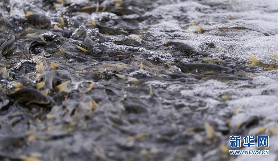7月6日,在青海省刚察县沙柳河里,湟鱼在向上洄游。 盛夏时节,在我国最大的内陆咸水湖青海湖中,湟鱼开始成群结队沿着入湖河流逆流而上,到上游淡水河产卵,形成“半河清水半河鱼”的奇观。 新华社记者 费茂华摄