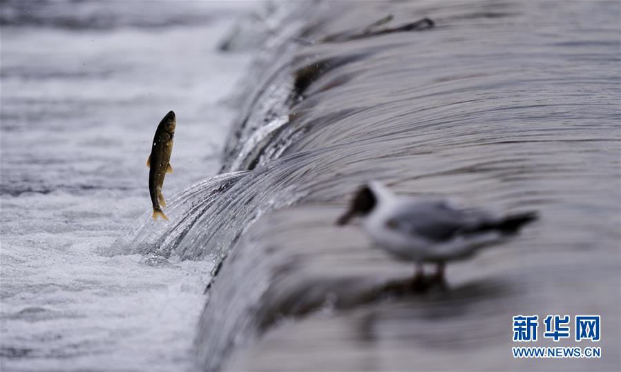 7月6日,在青海省刚察县沙柳河里,湟鱼在跃起向上洄游。 盛夏时节,在我国最大的内陆咸水湖青海湖中,湟鱼开始成群结队沿着入湖河流逆流而上,到上游淡水河产卵,形成“半河清水半河鱼”的奇观。 新华社记者 费茂华摄