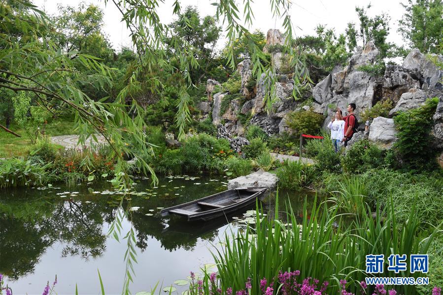 7月7日,游客在湖南园中参观。 当日,2019年中国北京世界园艺博览会“湖南日”活动在北京世园会园区举行。 新华社发(任超 摄)
