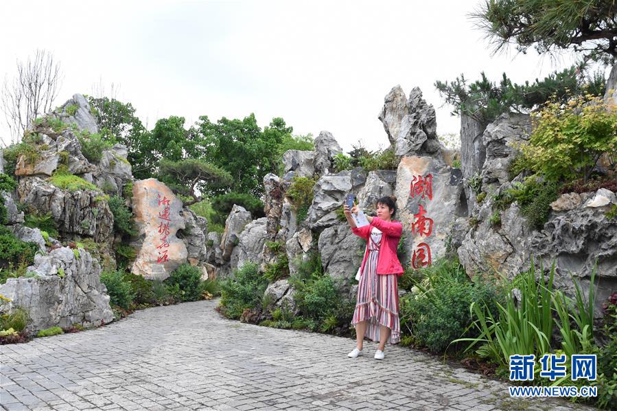 7月7日,游客在湖南园中自拍留念。 当日,2019年中国北京世界园艺博览会“湖南日”活动在北京世园会园区举行。 新华社发(任超 摄)