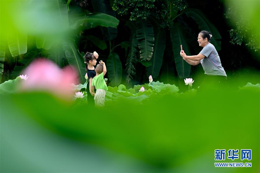 7月9日,市民在福州金山公园内赏荷拍照。 近日,福州各公园内的荷花进入盛花期,吸引游人前来赏荷、拍照。 新华社记者 姜克红 摄