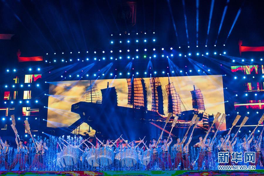 在2019昆明郑和文化旅游节开幕式上,演员在节目《启航》的表演中(7月11日摄)。 7月11日晚,2019昆明郑和文化旅游节在云南省昆明市晋宁区开幕。此次文化旅游节为期五天,将举办郑和纪念大典、千人秧佬鼓舞大赛等多项活动。 昆明市晋宁区是七下西洋的伟大航海家郑和的故乡。 新华社记者 胡超 摄