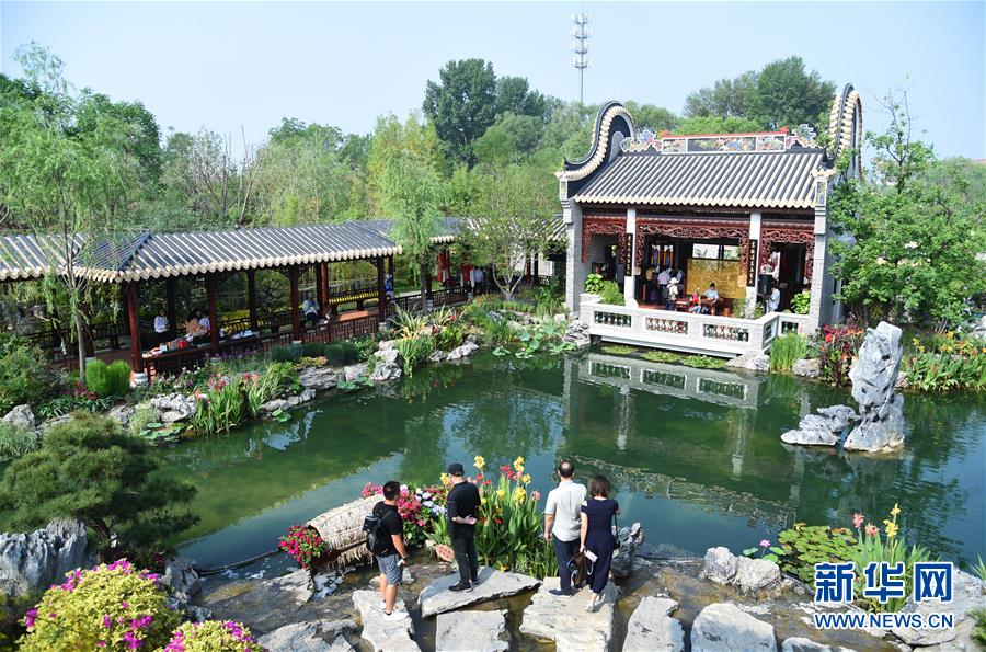 7月11日,游客在北京世园会南粤园中参观。 新华社发(任超摄)