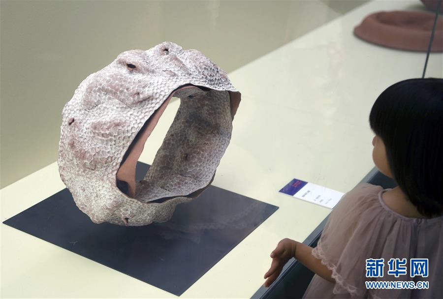 7月12日,观众在展览上欣赏陶艺作品《吾》。 当日,“大潮涌进”浙江省第十四届美术作品展览”在浙江美术馆开幕。本届展览共展出作品600余件,涵盖中国画、油画、版画、陶艺、实验艺术等门类,其中获浙江美术奖金奖的作品10件。 新华社发(施健学摄)