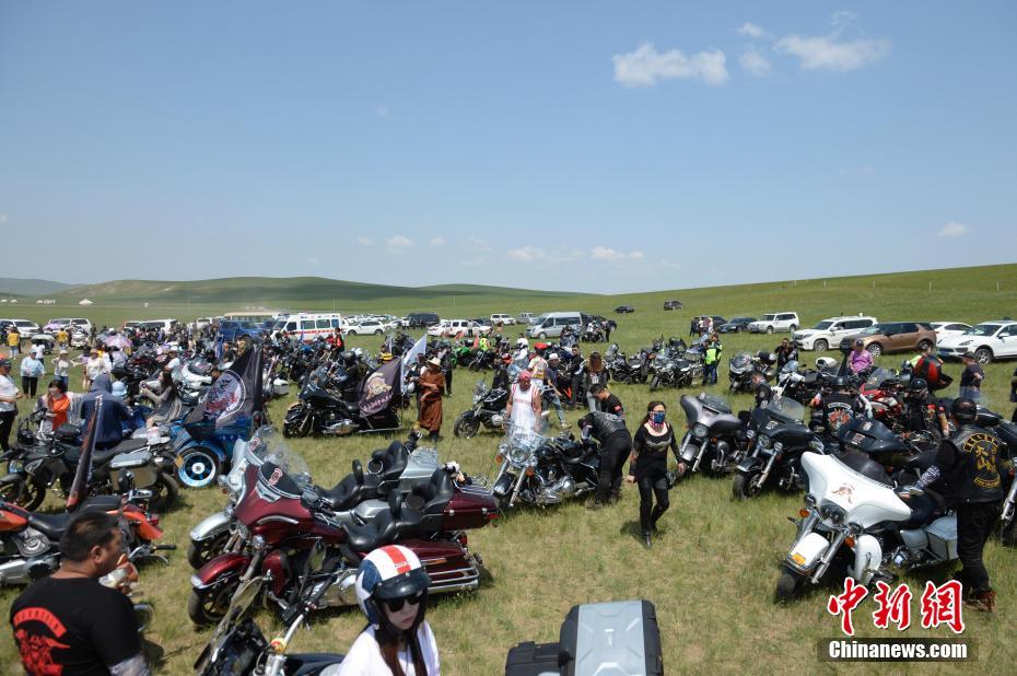 内蒙古举办重型机车嘉年华 骑手草原骑行放飞心情
