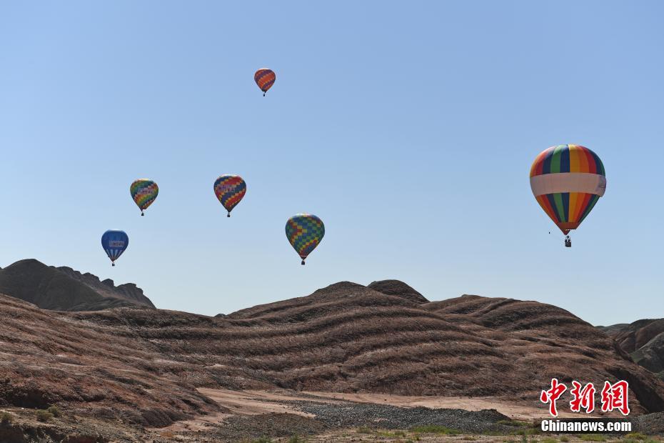 百名运动员乘热气球穿越甘肃张掖七彩丹霞