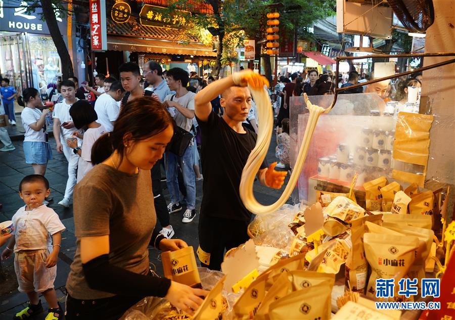 7月19日,在西安回民街上,一名店员在手工制作麦芽糖。 暑期以来,西安市各大旅游景点人气火爆。大量游客前来游览历史文化景区,品尝传统特色美食,感受千年古都厚重与时尚交融的独特魅力。 新华社记者 邵瑞 摄