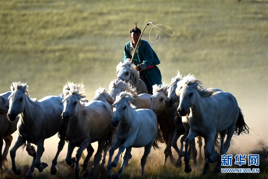 7月21日,一名套马手正在套马。 当日,内蒙古西乌珠穆沁旗在巴彦胡舒苏木白马繁育基地的草原上进行套马活动,向广大游客展示蒙古族高超的套马技艺和独具风情的草原民俗文化。 新华社记者任军川摄