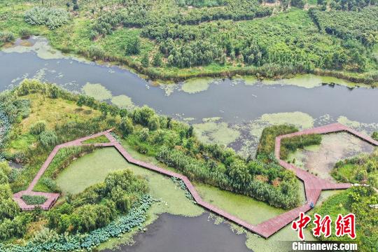 俯瞰赤山湖国家湿地公园。 泱波 摄