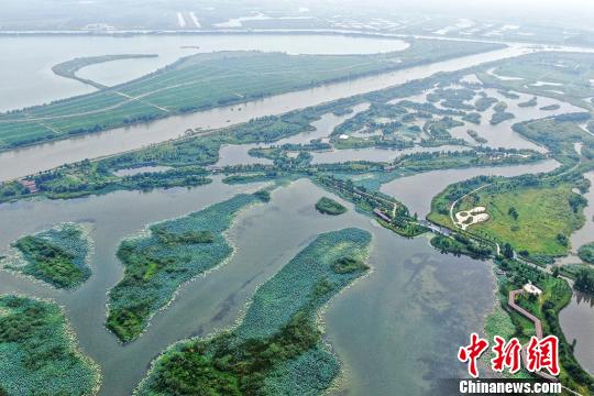 湖面广阔、河流环绕、滩涂交织、岛屿点缀……7月22日,航拍江苏句容赤山湖国家湿地公园,湖泊、河流、草本沼泽、鱼塘、水稻田等映入眼帘,呈现夏日旖旎。