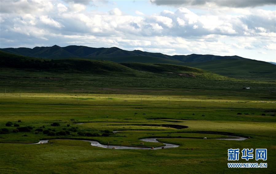 这是美丽的西乌珠穆沁旗白彦花镇阿拉腾兴安嘎查乃林河草原风光(7月23日摄)。新华社记者 任军川 摄