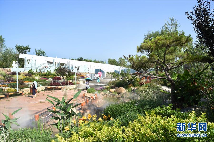 7月25日,游客在重庆园参观。 当日,2019年中国北京世界园艺博览会“重庆日”活动在北京世园会园区举行。 新华社发(任超摄)