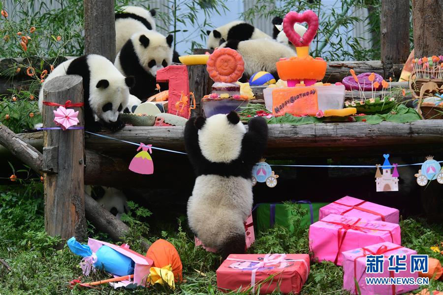 四川卧龙:2018年出生的大熊猫幼仔集体过生日