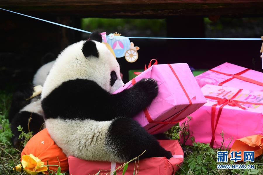 四川卧龙:2018年出生的大熊猫幼仔集体过生日
