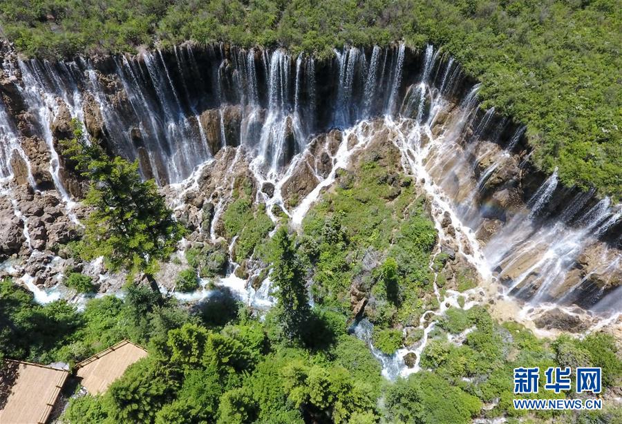 这是位于四川省阿坝藏族羌族自治州九寨沟景区的诺日朗瀑布(2019年6月5日无人机拍摄)。 新华社记者 薛玉斌 摄