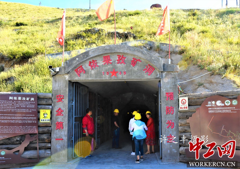 在新疆准噶尔盆地的东北边缘,阿尔泰山脉的东端南麓,隐藏着一个和共和国命运息息相关的神秘大坑――可可托海三号矿坑。可可托海三号矿坑深200米,直径250米,宽240米,边壁上的盘山道呈螺旋状,盛产着目前世界上已知的140多种有用矿物中的86种矿。目前已被新疆维吾尔自治区可可托海世界地质公园。图为2019年8月4日的新疆可可托海三号矿坑。工人日报-中工网许之丰摄影报道