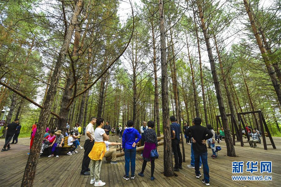 8月3日,游客在北极村游览。 盛夏时节,黑龙江省漠河市的北极村空气清新,凉爽宜人,吸引众多游客前来消暑纳凉。 新华社记者李晓果摄