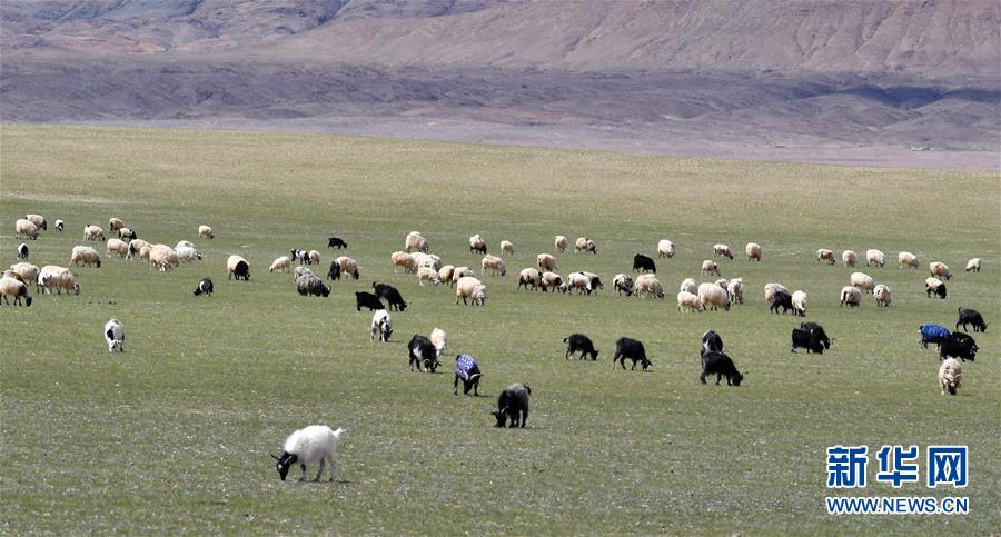 8月4日拍摄的尼玛县草原上的羊群。 西藏那曲市尼玛县位于西藏西北部,位于羌塘国家级自然保护区内,是古老象雄文明的发祥地之一。这里空气洁净,野生动物繁多,深受游客喜爱。 新华社记者 觉果 摄