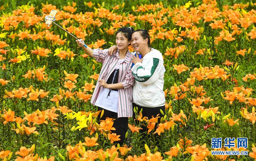 8月8日,游客在伊春市九峰山养心谷景区拍照留念。 时值八月,黑龙江省伊春市林区空气清新,凉爽宜人,吸引众多游客。 新华社记者李晓果摄