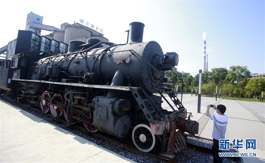 8月8日,市民在华新水泥厂旧址参观华新水泥曾经使用过的一个火车头。黄石市在华新水泥厂旧址上建起了湖北水泥遗址博物馆。 新华社记者 姚琪琳 摄