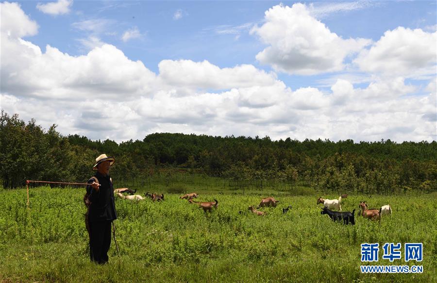 8月10日,一位老人在云南寻甸北大营草场放牧。 新华社记者杨宗友摄