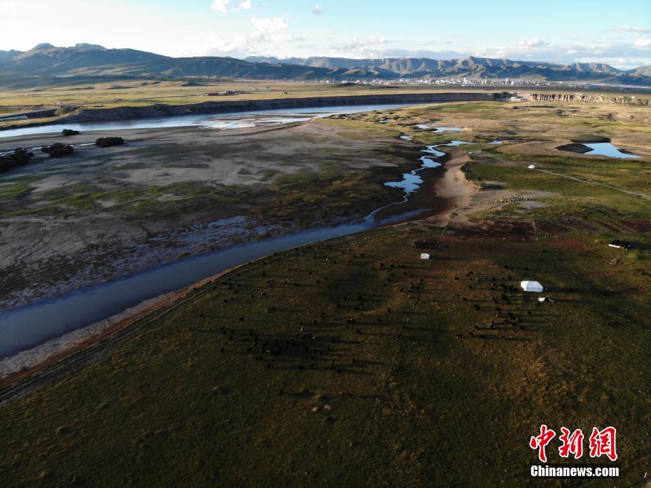 8月23日,甘肃玛曲县,一场秋雨过后的黄河“首曲”在夕阳照射下美景如画。黄河流经玛曲大草原时,突然斗折而行,形成了秀美绝伦的“天下黄河九曲十八湾”之首曲景观。中新社记者 杨艳敏 摄