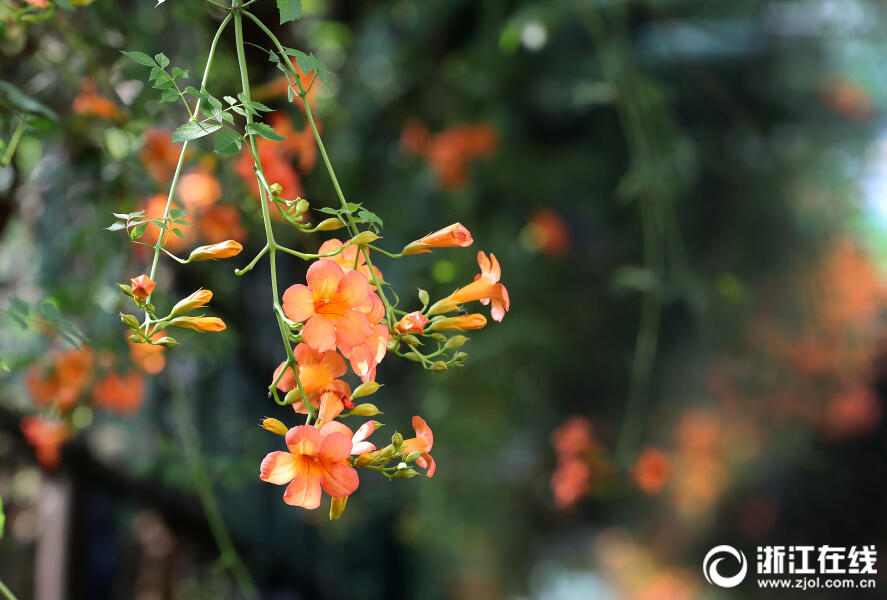 浙江在线8月15日讯(浙江在线记者 林云龙 拍友 钱洪华 摄)8月15日,杭州田园社区在凌霄长廊下举办“民星”大舞台活动,居民们在绿荫蔽日、繁花盛开的长廊里乐享生态社区的夏日风情。该社区2013年构建了长达200米的网架长廊,经过七年精心养护,数百棵凌霄藤蔓已爬满5米高的网架,七、八月份金黄色的凌霄花盛开之时,成为炎炎夏日里一道清凉宜人的别样风景。