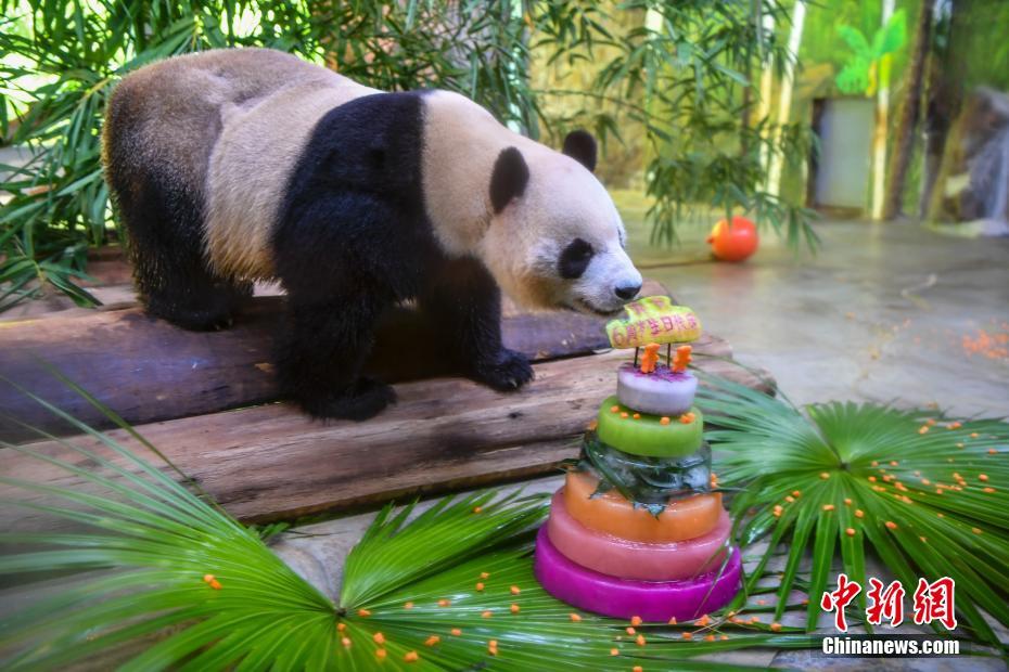 海南动物园为大熊猫兄弟“贡贡”和“舜舜”庆生