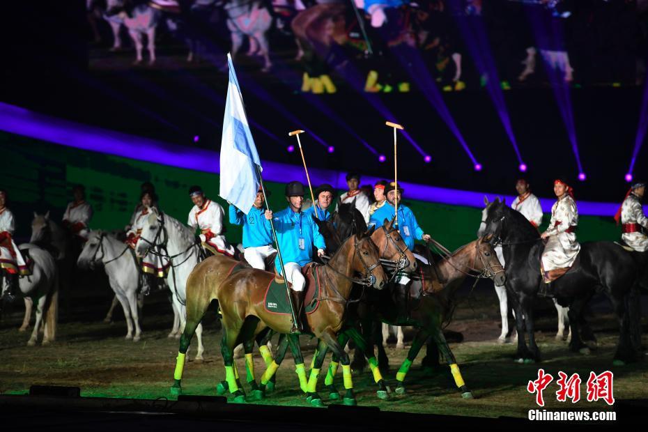 8月18日,阿根廷马球队亮相开幕式。当日,第二届中国马文化节暨首届内蒙古国际马文化博览会在内蒙古自治区呼和浩特市开幕。 中新社记者 刘文华 摄