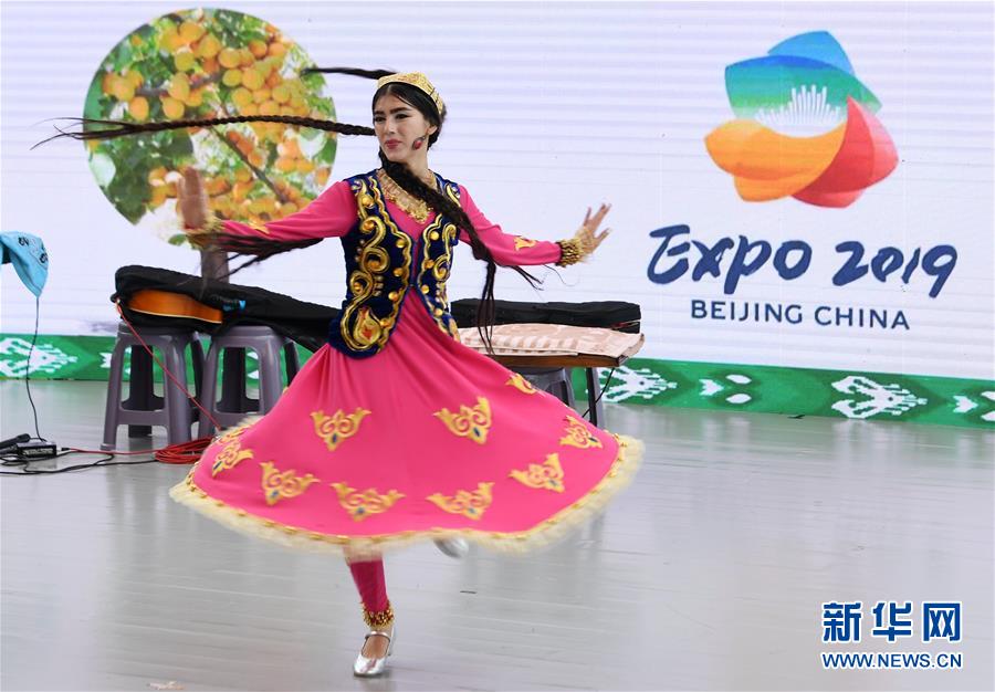 8月20日,演员在“塔吉克斯坦国家日”活动中演出。当日,2019年中国北京世界园艺博览会“塔吉克斯坦国家日”活动在北京世园会园区举行。新华社记者 张晨霖 摄