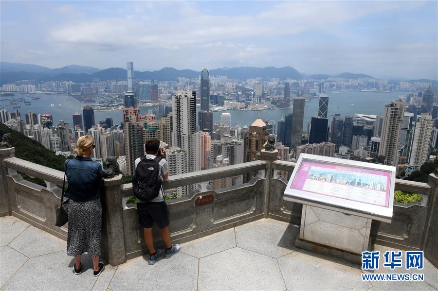 游客在香港太平山顶游玩(8月20日摄)。 近期一系列的社会事件使香港旅游业备受重创。香港特区政府商务及经济发展局数据显示,香港的旅客人次同比增幅已由6月的正值逐渐变为负值,8月初跌幅变为31%,香港酒店入住率7月开始出现双位数同比跌幅,香港零售业表现预计8月滑向双位数跌幅。 新华社记者 卢汉欣 摄