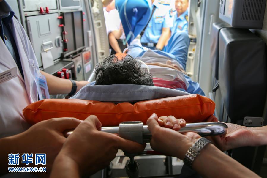 8月22日,在老挝万象,受伤中国游客在中国人民解放军“和平列车”医疗队医护人员护送下登机回国。 当日下午,首批在老挝北部遭遇车祸受伤的4名中国游客从老挝首都万象瓦岱国际机场乘机回国。 新华社记者 章建华 摄