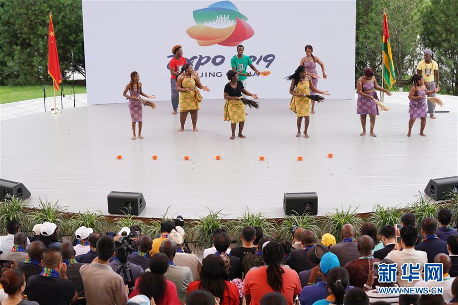 8月22日,演员在“多哥国家日”活动上表演。 当日,2019年中国北京世界园艺博览会“多哥国家日”活动在北京世园会园区举行。 新华社记者鞠焕宗摄