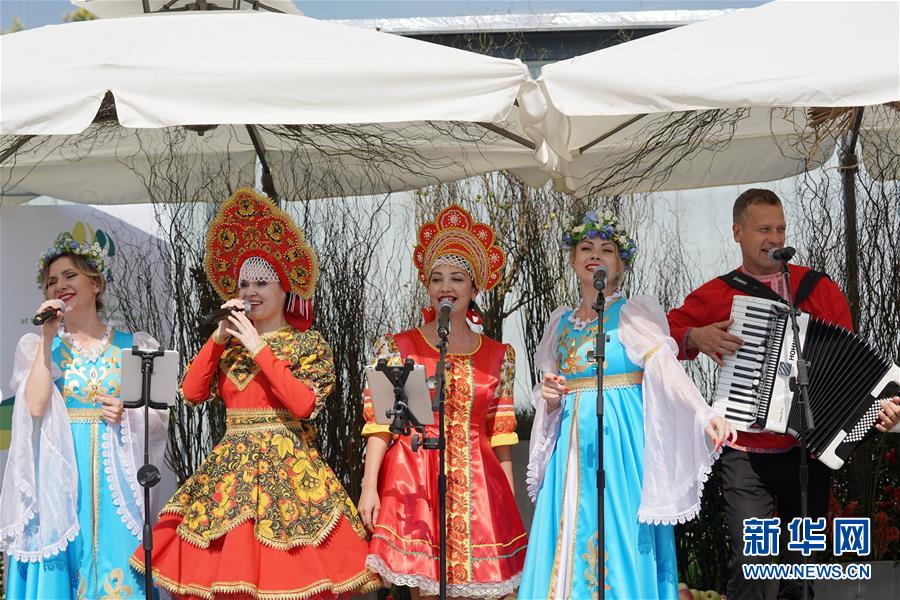 8月24日,演员在“俄罗斯国家日”活动上表演。 当日,2019年中国北京世界园艺博览会“俄罗斯国家日”活动在北京世园会园区举行。 新华社记者 鞠焕宗 摄