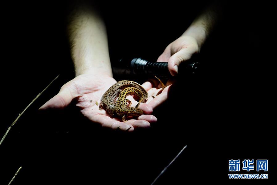 科研人员展示在武夷山国家公园腹地挂墩村一带溪流里发现的肥螈(8月23日摄)。 位于福建省的武夷山国家公园是“蛇的王国”“鸟的天堂”“昆虫的世界”,这里独特的自然环境,造就了丰富的生物多样性,成为人们认识自然、亲近自然的理想之地。 新华社记者 姜克红 摄