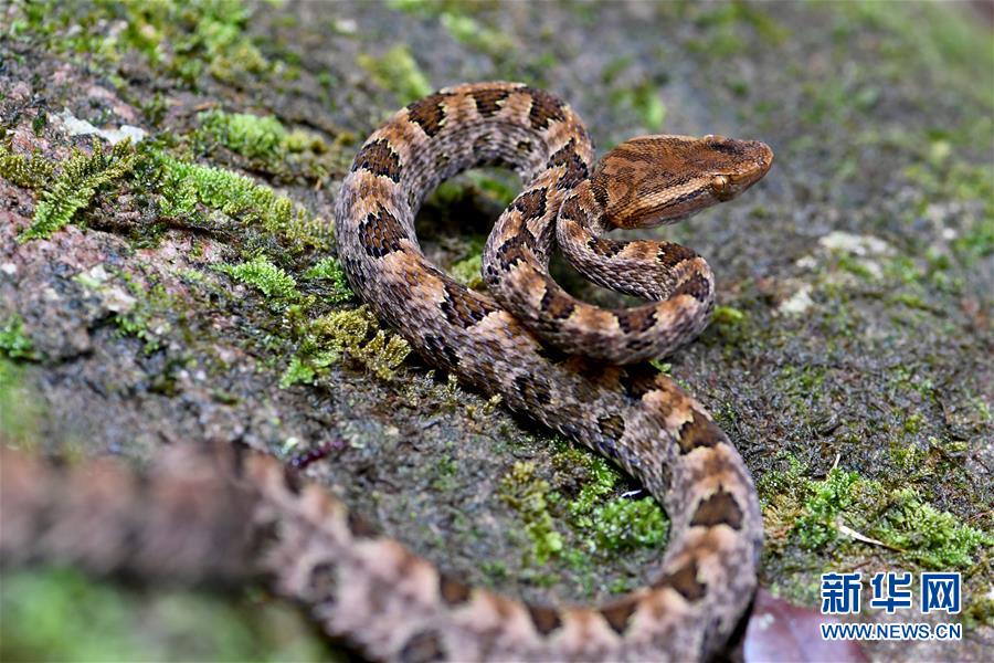 在武夷山国家公园腹地拍摄的一只烙铁头蛇(8月23日摄)。 位于福建省的武夷山国家公园是“蛇的王国”“鸟的天堂”“昆虫的世界”,这里独特的自然环境,造就了丰富的生物多样性,成为人们认识自然、亲近自然的理想之地。 新华社记者 姜克红 摄