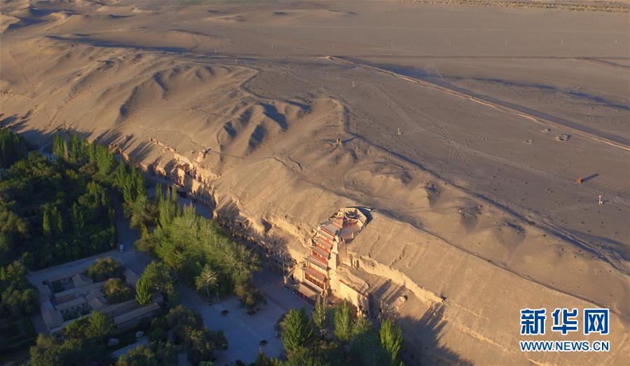 世界文化遗产莫高窟(2016年9月7日无人机拍摄)。新华社记者 陈斌 摄