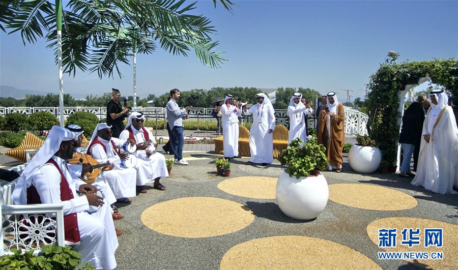 9月2日,卡塔尔演员为游人演奏乐器。 当日,2019年中国北京世界园艺博览会“卡塔尔国家日”活动在北京世园会园区举行。 新华社记者李欣摄