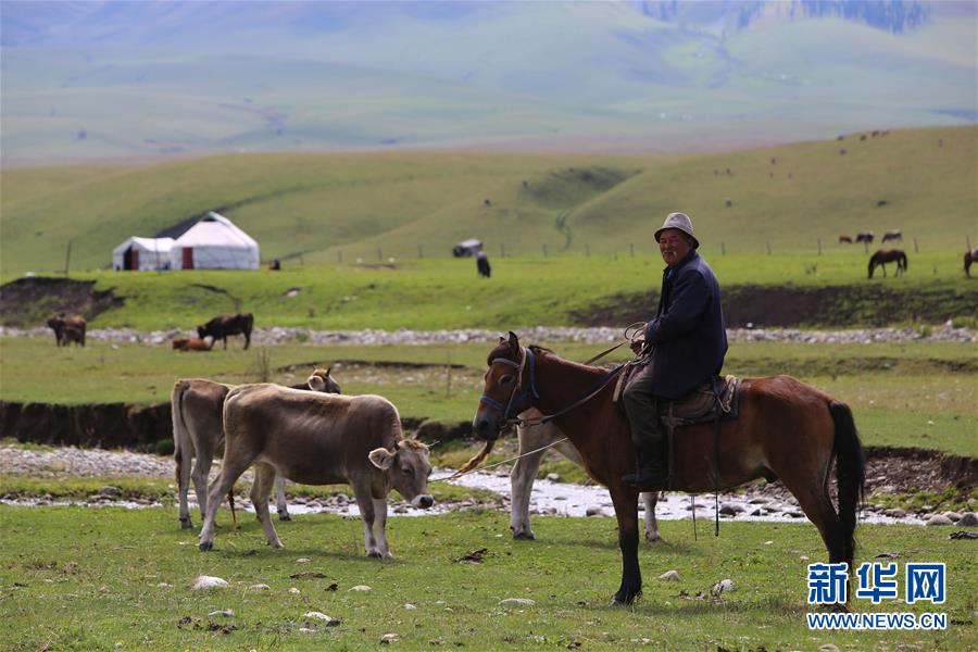 这是9月7日在那拉提景区拍摄的牧民。 那拉提景区位于新疆新源县境内,三面环山,巩乃斯河蜿蜒流过,保留着浓郁的民俗风情和丰富的草原文化。 新华社记者 安希雅 摄