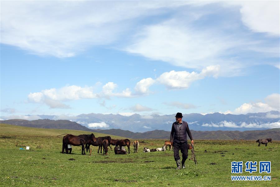 这是9月7日在那拉提草原拍摄的牧民。 那拉提景区位于新疆新源县境内,三面环山,巩乃斯河蜿蜒流过,保留着浓郁的民俗风情和丰富的草原文化。 新华社记者 程丽 摄