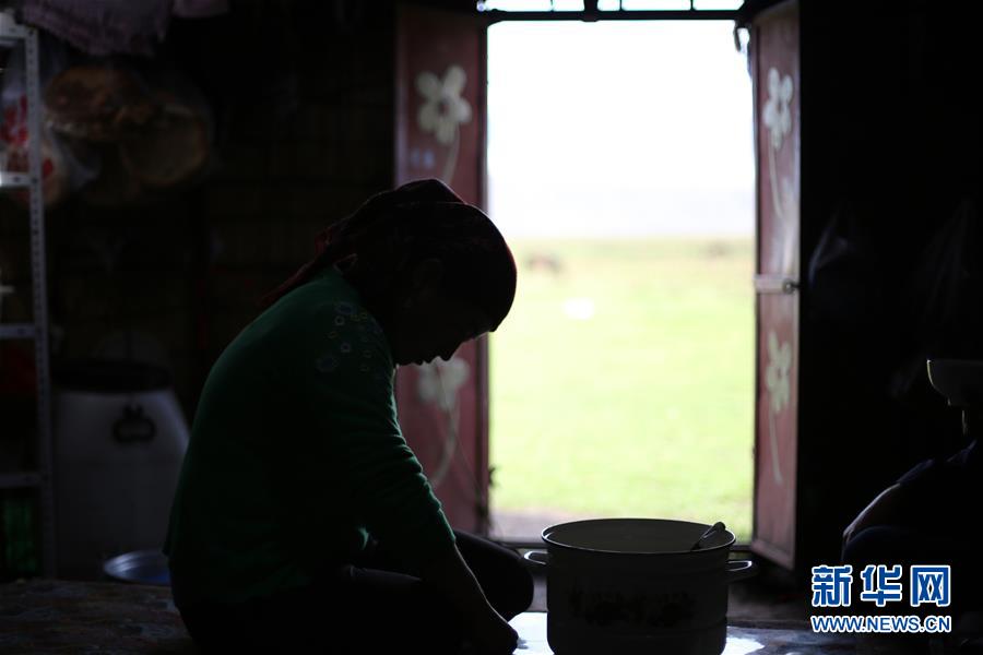9月7日,牧民在那拉提草原的毡房内盛马奶。 那拉提景区位于新疆新源县境内,三面环山,巩乃斯河蜿蜒流过,保留着浓郁的民俗风情和丰富的草原文化。 新华社记者 程丽 摄