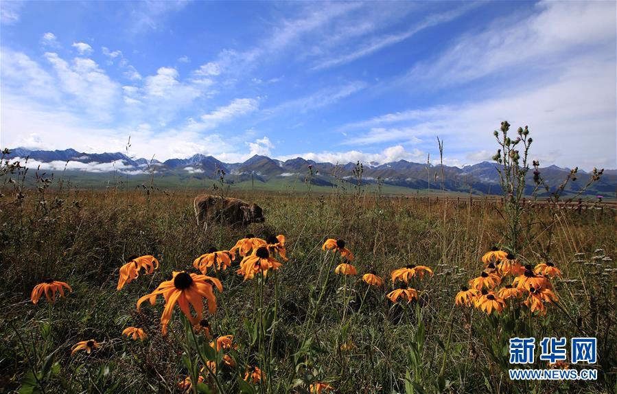 这是9月7日拍摄的那拉提景区风光。 那拉提景区位于新疆新源县境内,三面环山,巩乃斯河蜿蜒流过,保留着浓郁的民俗风情和丰富的草原文化。 新华社记者 安希雅 摄